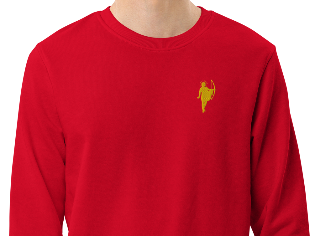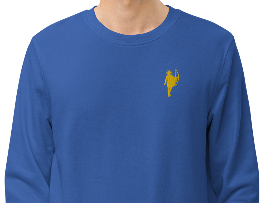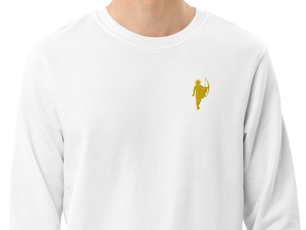 Ideal embroidered sweater to dispense beauty, hotness, warmth or death like the sun. Mog nihilists and worshipers of desert cults by wearing our god and ideal type, Apollo.