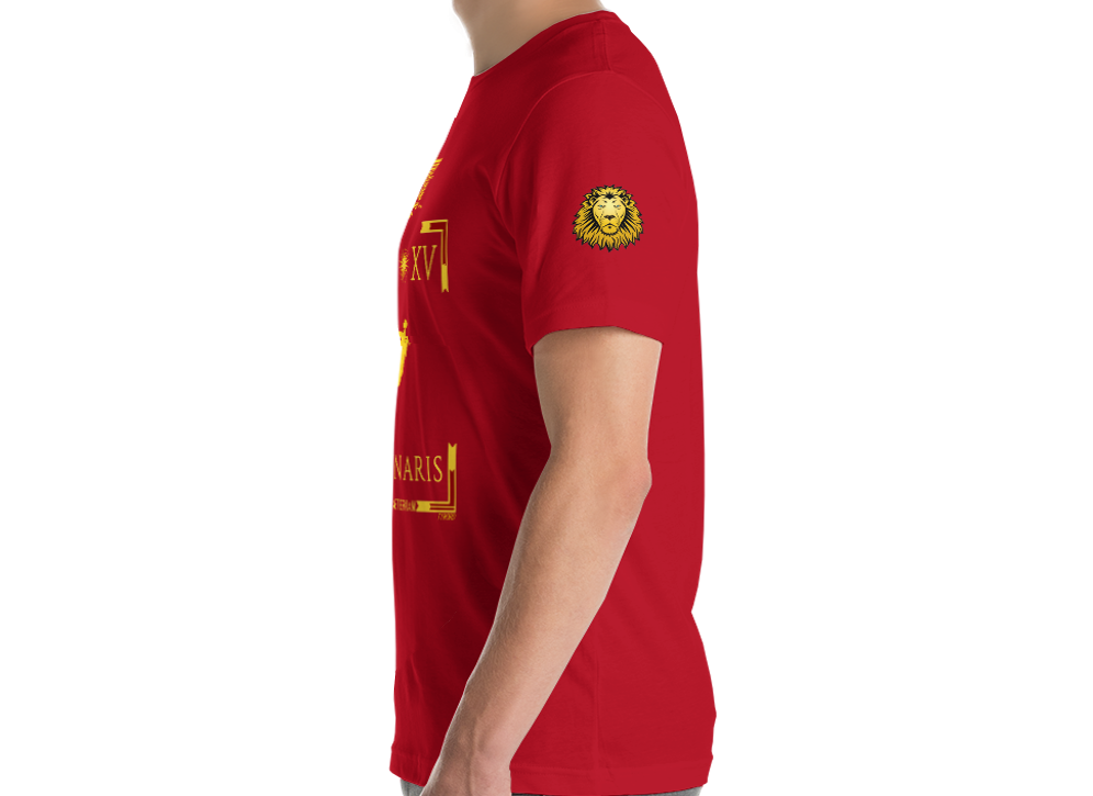 Pump iron, increase your strength and sculpt a physique worthy of the gods while wearing the banner of the legendary LEGIO XV Apollinaris founded by Julius Cesar and which marched on Judea under Titus. The right sleeve is adorned with an eagle and the left one with a lion, the most respected beasts of european antiquity.