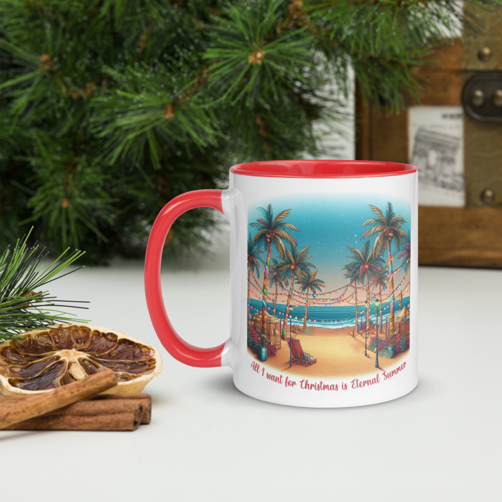 MSWB on one side, "All I want for Christmas is Eternal Summer" and a christmas beach on the other.